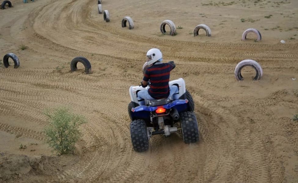 The Quad Biking In Jaisalmer provides you with the opportunity of experiencing an adventurous activity session in Jaisalmer that would fill your heart with everlasting memories. Grab the chance to gain back the sportsman spirit in you. Let yourself undergo a fun-filled ATV Ride in Jaisalmer and enjoy the pleasure of riding a quad bike in the golden dunes of Thar Desert.